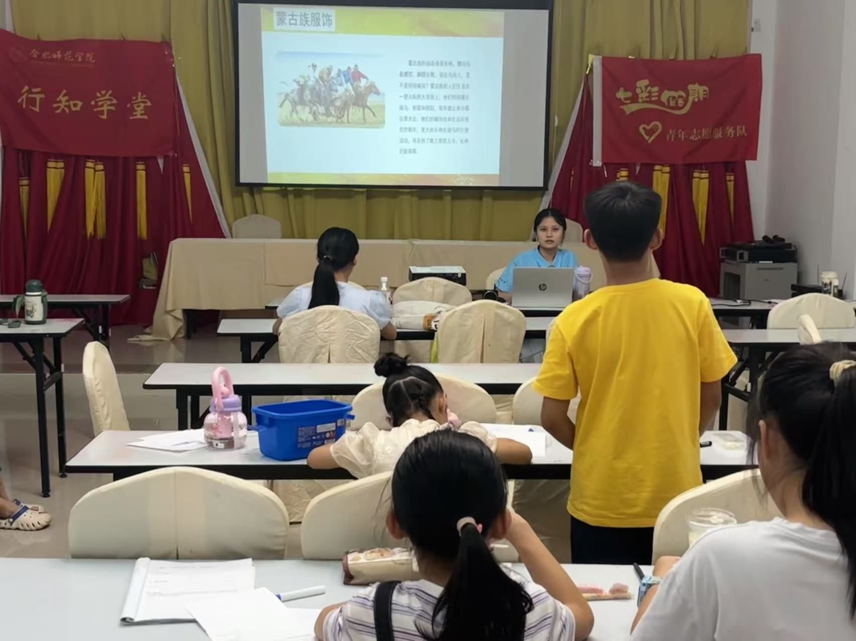 “五十六个民族,五十六枝花,五十六个兄弟姐妹是一家。”这句耳熟能详的歌谣,道出了中华民族多元一体的深刻内涵——各民族既保留独特风情,又在交融中凝聚成命运共同体。7月16日,锦绣方兴社区翰林行知学堂的行知“小先生”们以服饰为媒,为社区小学员带来“民族服饰件件美”创意课程,在斑斓针线与灵动画笔间,播撒民族团结的种子。