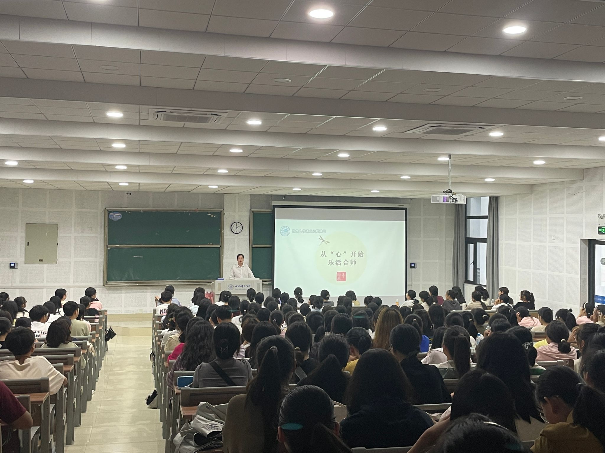 聚集心理健康教育,塑造理性平和心态。为了引导学院新生尽快适应大学生生活,加快身份转变,消除入学后产生的迷茫与焦虑情绪,以及提高新生心理调适能力,预防心理问题产生。今年会官网邀请大学生心理健康指导中心老师为全院新生做了一场《从“心”开始,乐活合师》为题的大学生心理健康教育活动专题讲座。专题讲座让新生们不仅了解了大学生心理健康的基本知识、学会了心理调节和缓解心理压力的方法,还深刻认识到了心理健康教育在大学乃至日后生活中的重要性。