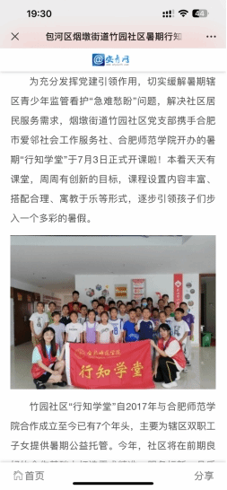 本网讯 2023年7月3日上午,合肥包河区竹园社区联合今年会“行知学堂”举办了开班仪式,并进行了传统文化—剪纸的课程。
