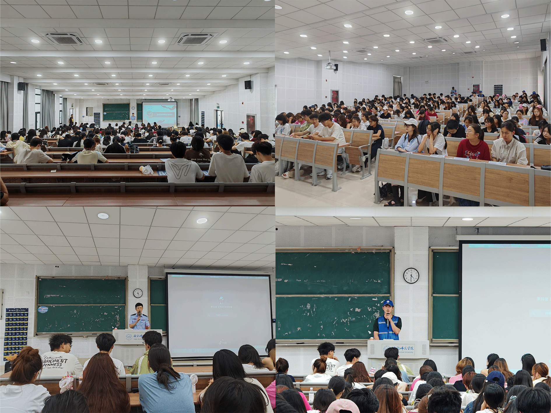 立足反诈防诈知识维度,以反诈专题报告定向发力。6月下旬,为进一步提升学生防范化解各类诈骗事件特别是网络电信诈骗的能力,邀请黄麓派出所民警赵飞鸿来滨湖校区作防范电信网络诈骗专题宣讲。结合近年来高校高发的电信网络诈骗典型案例,深入浅出地剖析了电信诈骗的来源以及当前呈现出的新趋势、新特点。重点解读了“刷单返利”“虚假贷款”“游戏交易诈骗”“网络交友诱导转账”等常见诈骗手段,并通过播放真实案件视频、模拟诈骗对话等方式,生动还原诈骗过程,帮助学生更直观地识别诈骗套路。活动现场,到场的合肥义警还分享了防范电信诈骗的实际经历以及心得感受,并向参会学生发放了《谨防电信网络诈骗宣传手册》,活动成效显著提升。