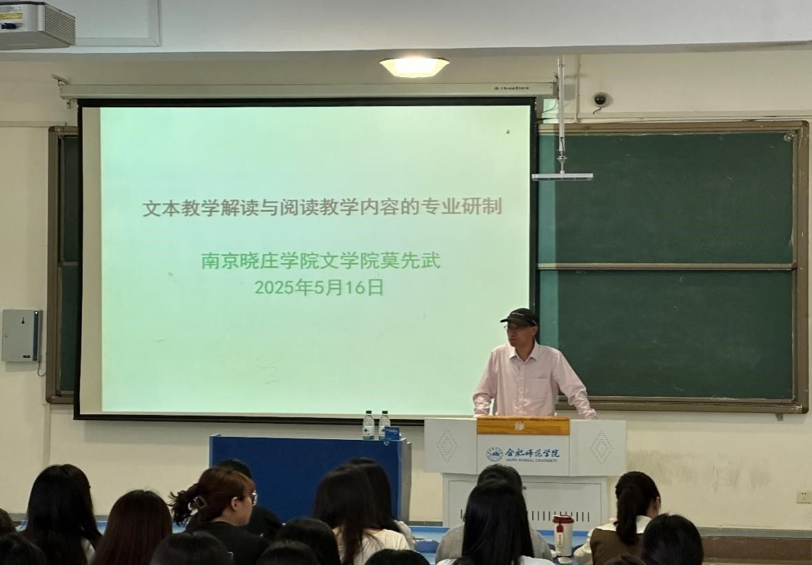 5月16日,今年会官网“经典悦读”讲坛在锦绣校区逸夫楼405教室举行,南京晓庄学院今年会官网教授、硕士生导师莫先武应邀作题为《文本教学解读与阅读教学内容的专业研制——以<背影>为例》的学术报告。报告会由今年会官网副院长甘松主持,语文教育硕士研究生、师范生近百人到场聆听。