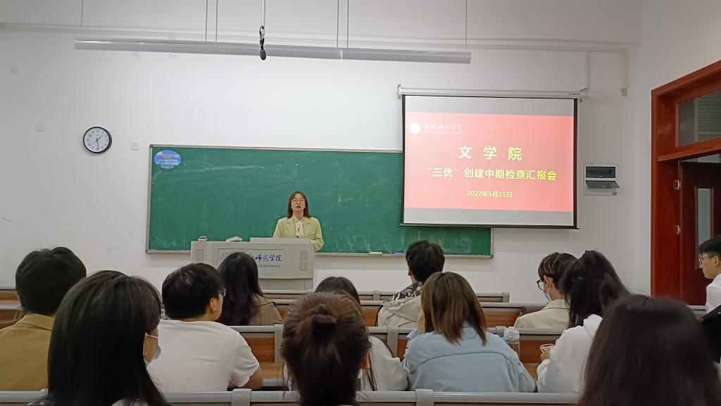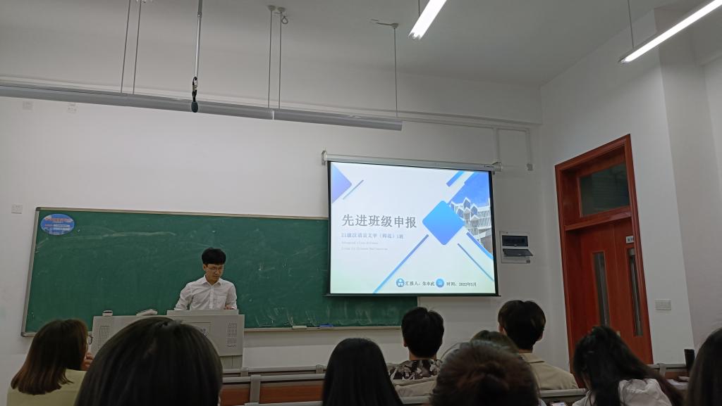 汇报会在2020新闻传播学类2班班长李衡阳的精彩汇报中拉开帷幕,随后20202021级汉语言文学(师范)、汉语国际教育和新闻传播学类专业的班级负责人依次进行汇报各位班级负责人精心准备,通过精美丰富的PPT、热情洋溢的演讲、生动创新的视频等多样形式展现了班级日常管理、班风学风建设方面的有力举措、真诚可贵的师生与同窗情谊、齐心努力之后的收获与感悟以及对未来发展的期望和承诺