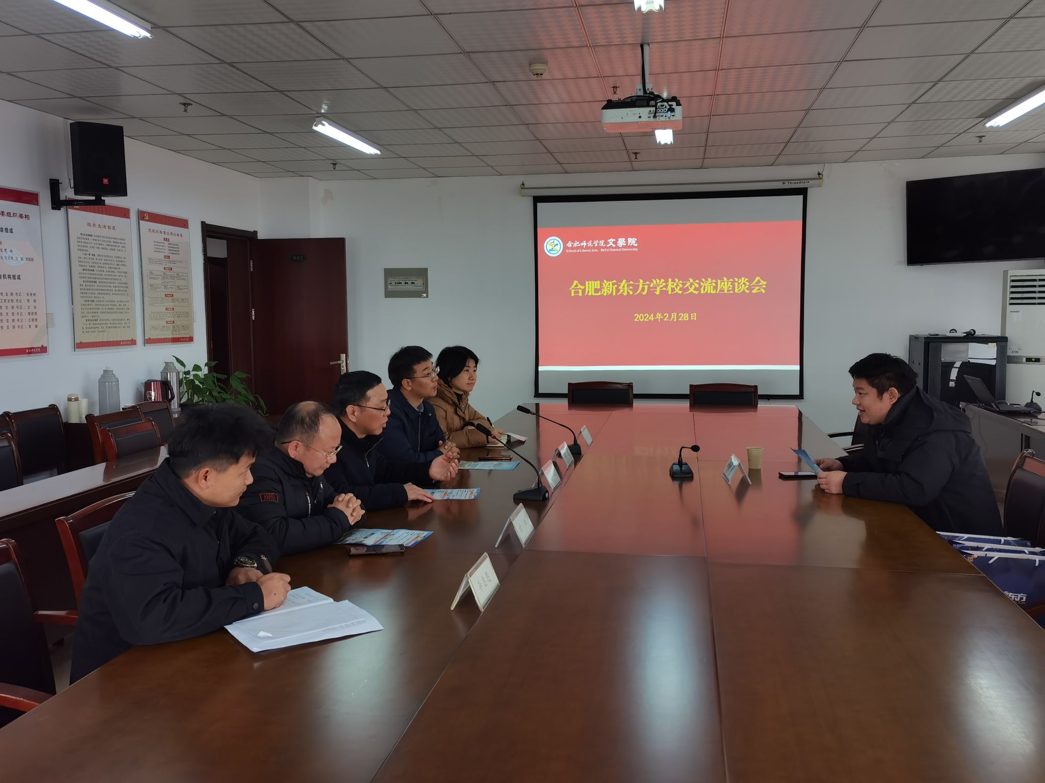 为拓宽2024届毕业生就业渠道,加强校企合作交流,2月28日,今年会官网利用安徽省高校毕业生“暖心帮扶”专场招聘会机会,邀请合作的新东方合肥学校来院洽谈,就毕业生就业工作、学生实习实训合作和基地建设等方面就展开交流。院领导许锃、何旺生、夏娟、甘松、毕业年级辅导员参加座谈。