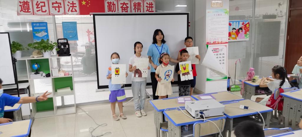 经过了20天的陪伴,学堂的小先生与小学员们到了分别的时刻。时间总是太快,让人只能回味。李煜乾结业仪式上说:“我还记得你们第1天来时的笑脸,希望你们能一直快乐的成长”。学堂小先生们展示了这20天的优秀成果。由程薇薇,金雨彤同学分别带孩子们唱歌和展示了孩子们平时创作的优秀画作。孩子们口中唱着歌,盯着这些画作,往日时光在脑海里一遍一遍的浮现。之后,学堂的小先生们给每一位同学都颁发了礼物。我们希望的是每一位同学在日后的生活里都能够不断的精进自己,拼搏自身,永无终点。