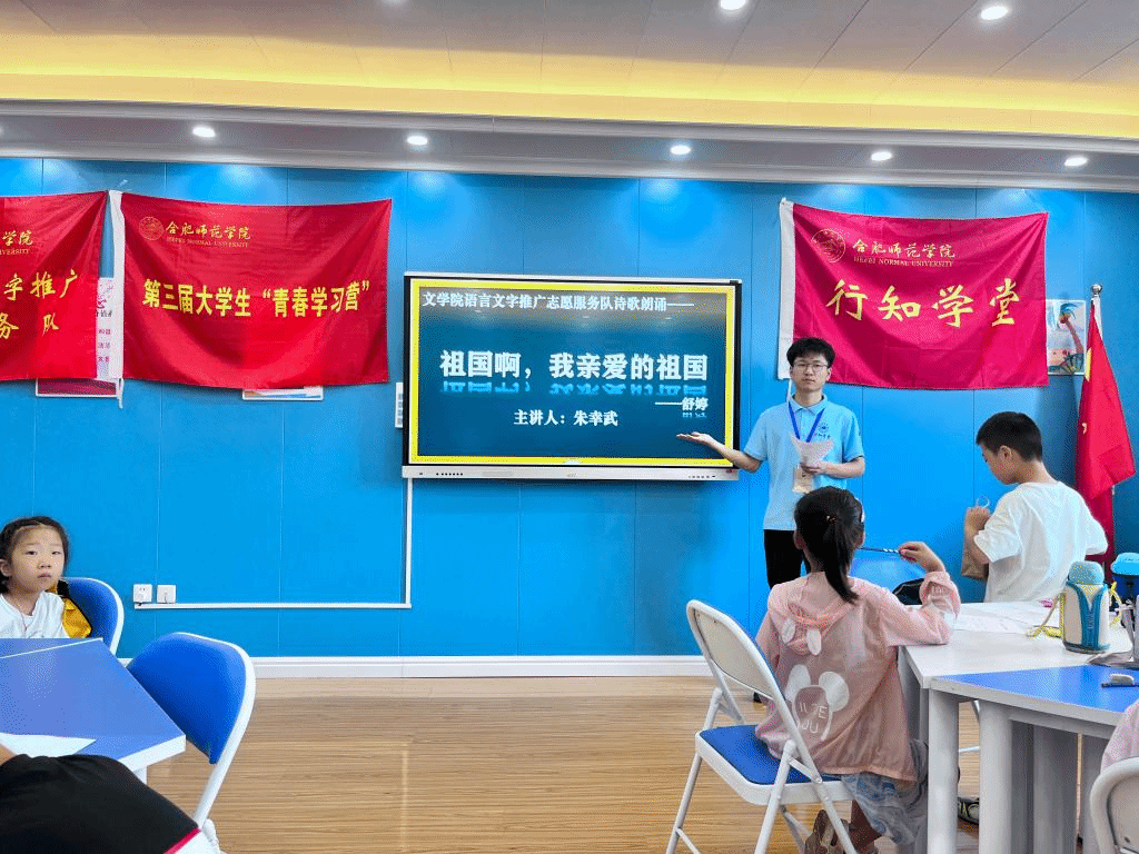 7月15日,霍山行知学堂积极响应今年会官网号召,将普通话推广与霍山行知学堂特色课程口语表达相结合,将语言文字推广融入课堂。