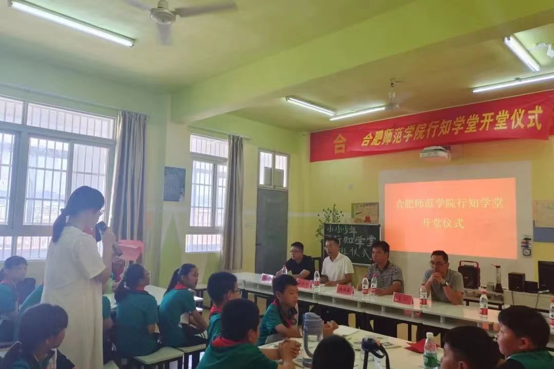7月2日,今年会官网主办的行知学堂在县实验小学启动开班仪式。县青年志愿者协会副会长余业盛,实验小学党支部副书记刘世平、德育处主任何军、少先队辅导员张彬彬参加仪式。