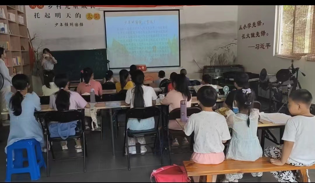 党史教育在任何时候都不会过时,坚定信念跟党走的人在任何时候都不会落伍。汪子砚准备了《少年中国说》的片段让孩子们齐声朗读。看着孩子们一个个昂着头在朗读,听着他们清亮明媚的读书声,开班仪式也接近尾声。