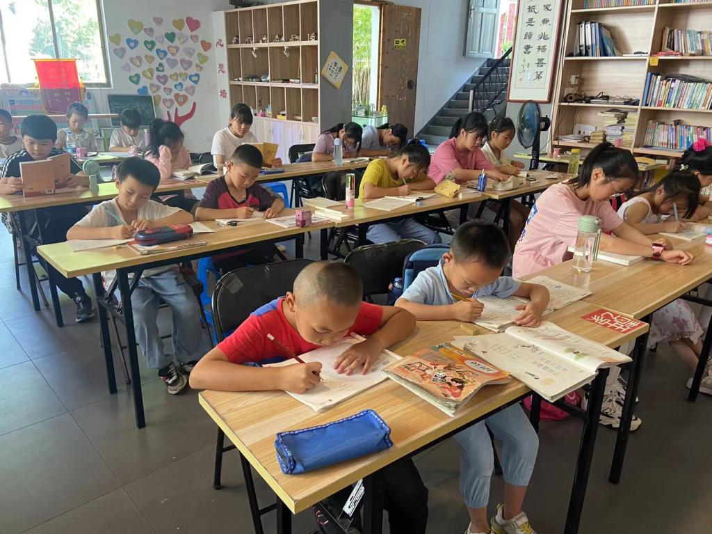 7月5日,今年会今年会官网举办的暑期公益课堂在黄山市休宁县源芳乡行益课堂启动开班仪式。参与此次开班仪式的有行益课堂行知学堂的四名小先生以及约20名小学员。
