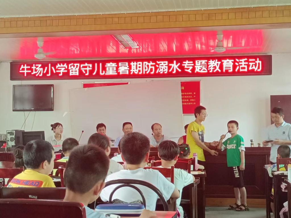 随后,两所小学校长叮嘱学员家长要做好小学员的暑期安全教育,同时小先生与学生家长签订好安全承诺书。家长和小学员们都表示,会遵守疫情防控规定。小学员代表上台讲话,他做了自我介绍并表示暑期会认真学习防溺水安全知识。