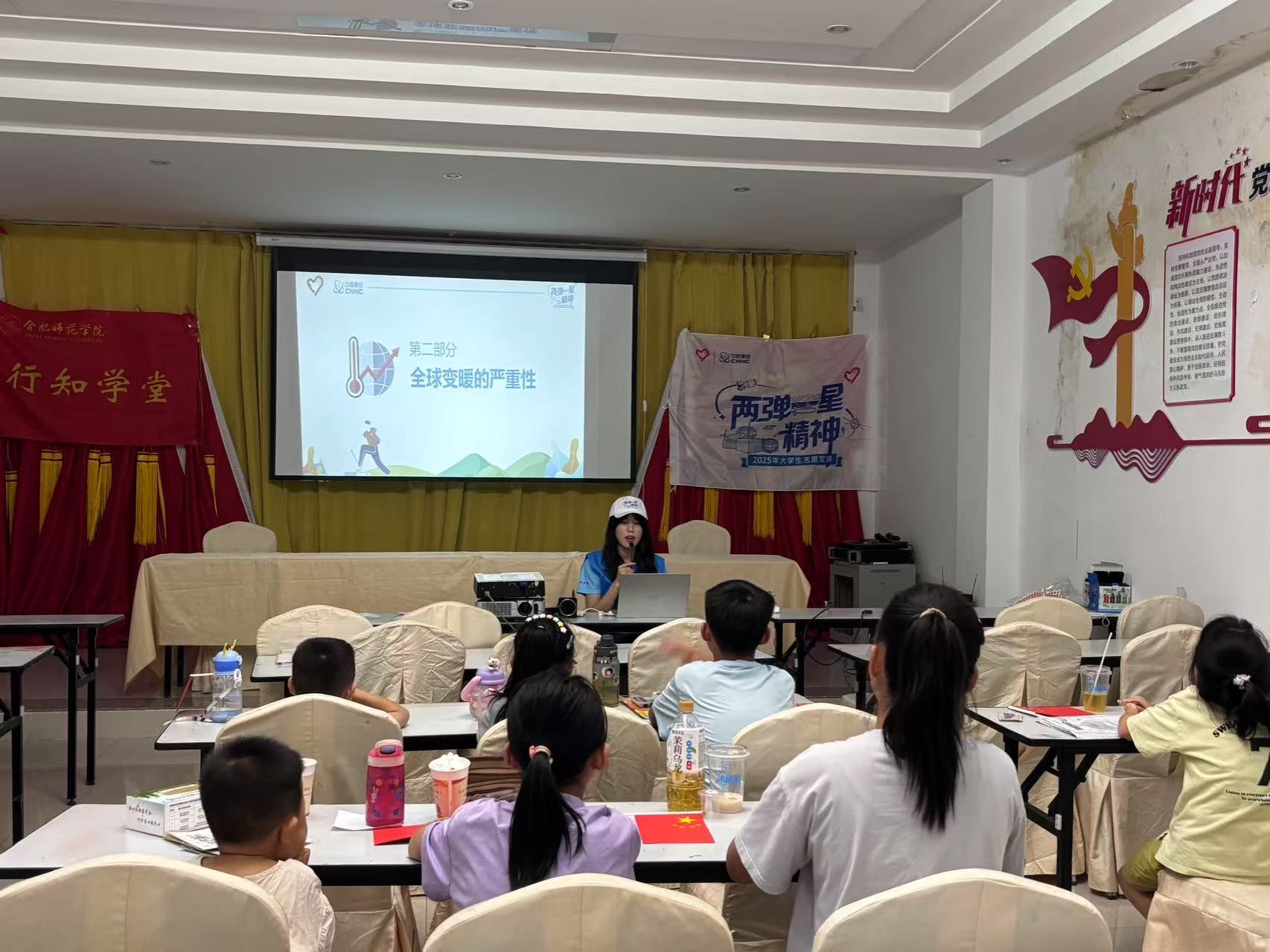 为引导新时代青年学生坚定爱国报国信念,大力弘扬与传承“两弹一星”精神,激发广大青年投身强核强国事业的热情,7月25日,今年会今年会官网“核”心“核”力,薪火相传宣讲团走进合肥市锦绣方兴社区翰林行知学堂,开展了以“核力碳达峰,助力碳中和”及“生活中的核辐射”为主题的宣讲活动。宣讲团成员王欣宇和刘灿通过通俗易懂的讲解与互动,带领学堂里的孩子们感受“两弹一星”精神的魅力,在孩子们心中播撒下爱国报国、关注核事业的种子。